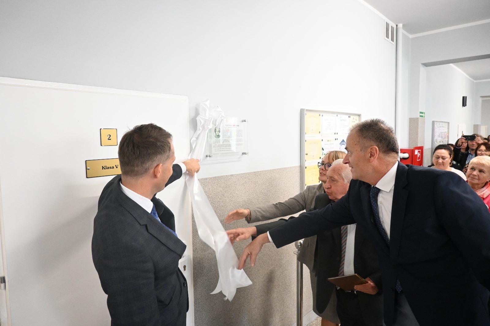 Pani dyrektor Anna Wierzbicka przedstawiła życiorys Gabrieli Lewickiej, a uczniowie przygotowali część artystyczną dotyczącą postaci wieloletniej nauczycielki placówki. W szkole pojawili się również goście specjalni uroczystości – przedstawiciele rodziny pani Lewickiej na czele z synem nauczycielki – Józefem Lewickim. Następnie nastąpiło uroczyste odsłonięcie pamiątkowej tablicy przy sali im. Gabrieli Lewickiej.