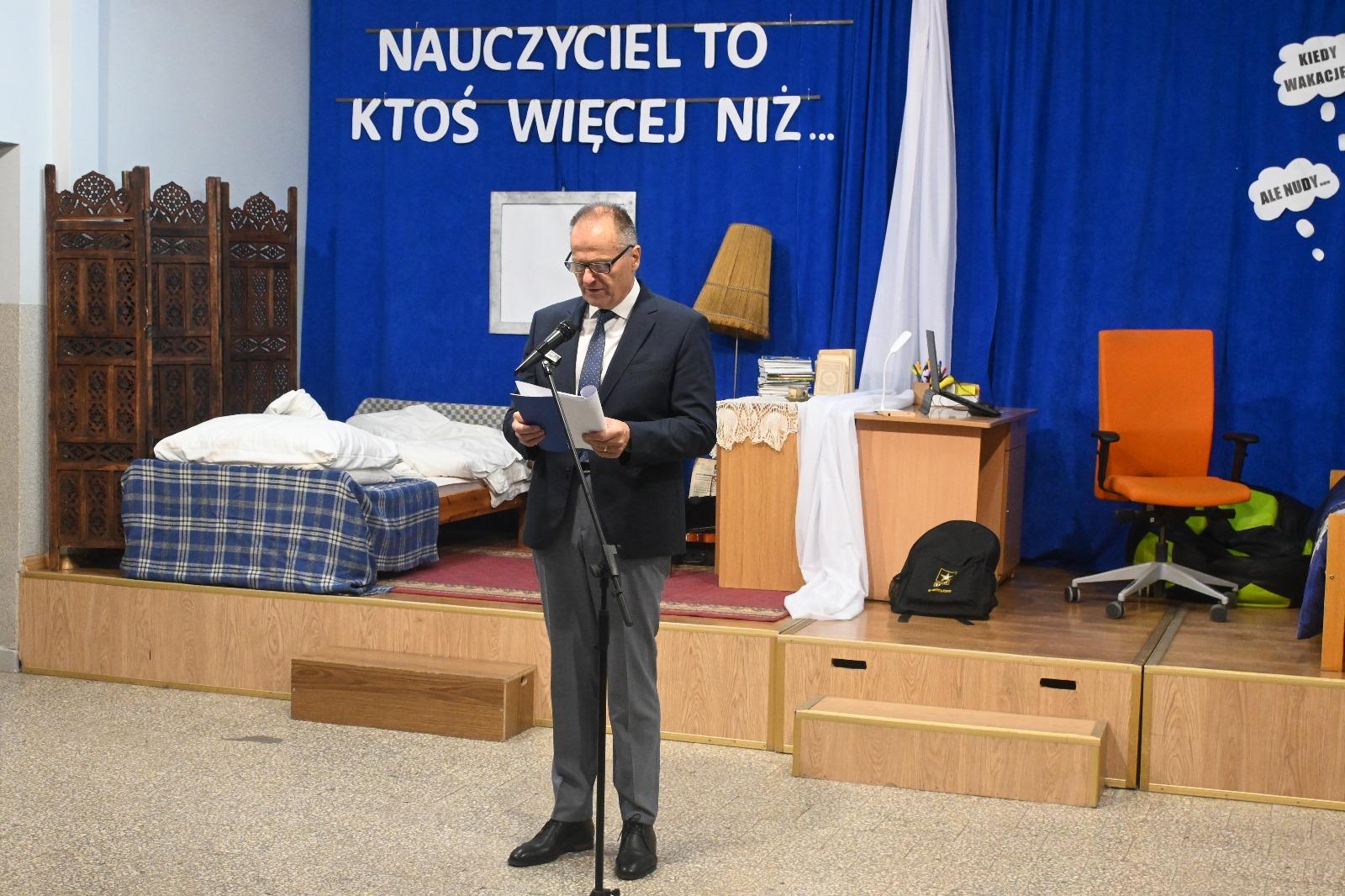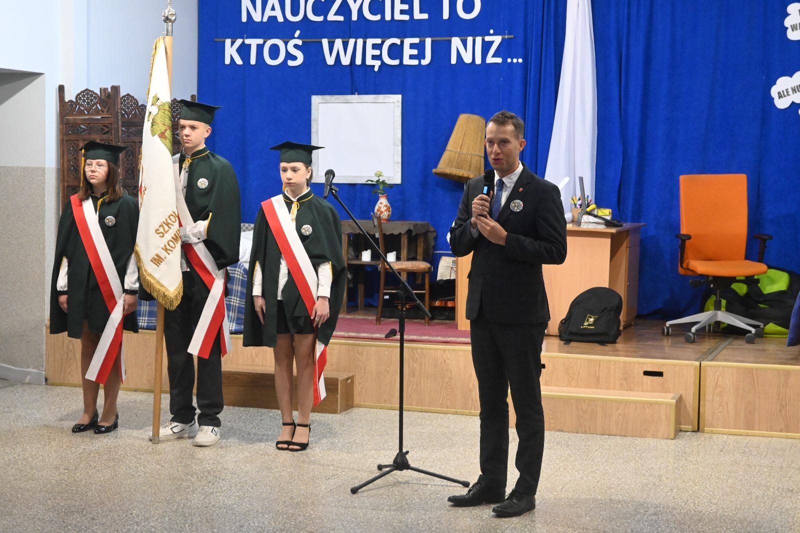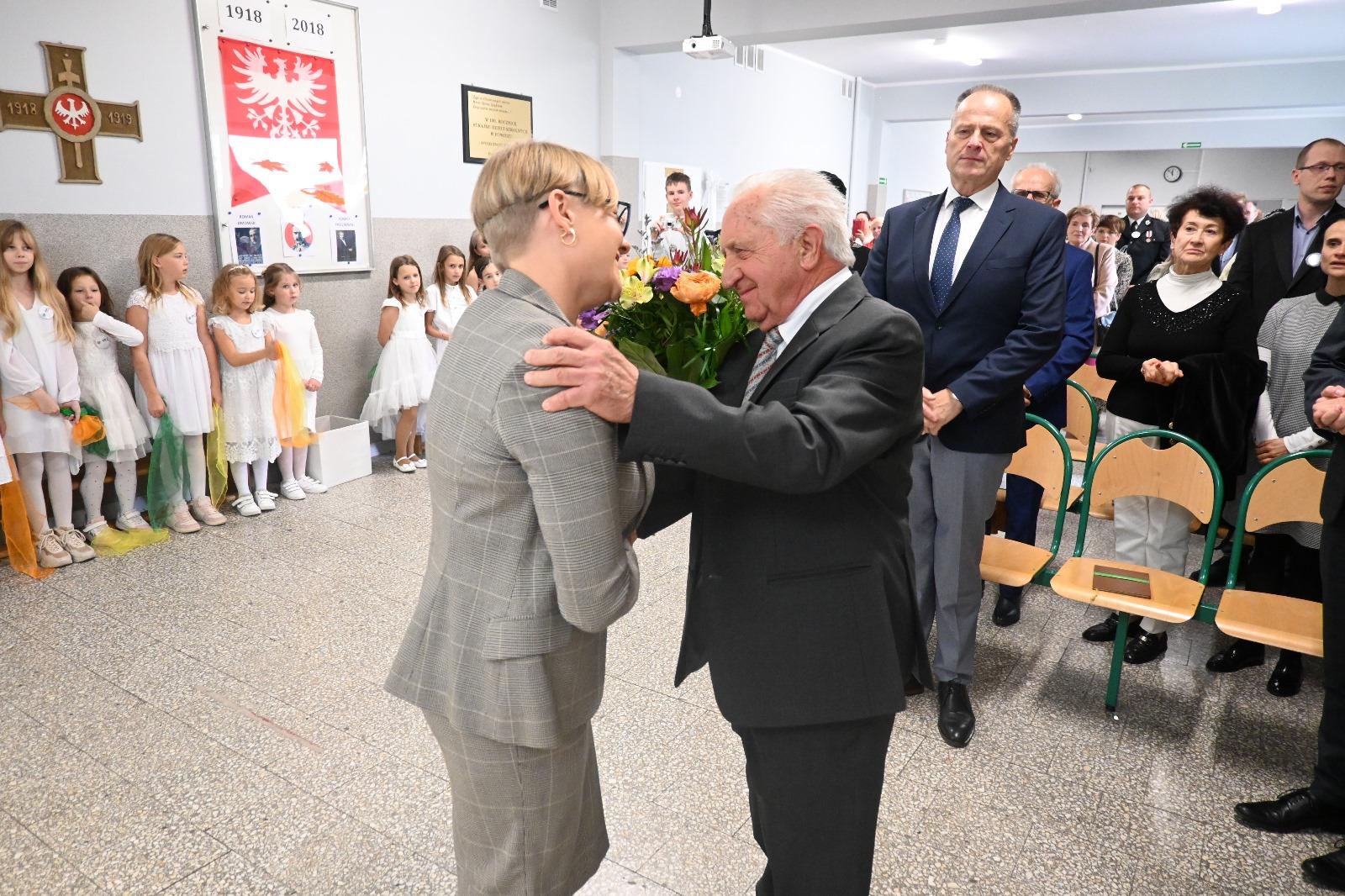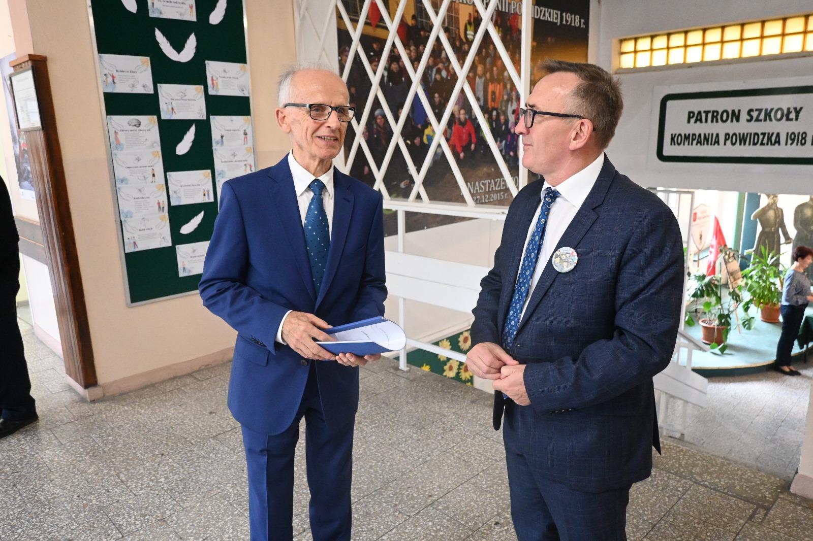 Wójt Gminy w swoim wystąpieniu zwrócił uwagę, że powidzka szkoła i związane z nią osoby czy wydarzenia są nam tak bliskie, ponieważ większość społeczeństwa to absolwenci tej placówki. Zaapelował, aby pamiętać o historii szkoły, bo to dziedzictwo, które buduje naszą lokalną tożsamość. W tym miejscu wspomniał o najważniejszych wydarzeniach z dziejów szkoły. Od początku zinstytucjonalizowanej oświaty, przez strajk dzieci szkolnych w 1907 r., następnie wydarzenia związane z Powstaniem Wielkopolskim. Wójt zwrócił uwagę na niezłomność nauczycieli na początku II wojny światowej (bohaterska postawa Gabrieli Lewickiej, rozstrzelanie nauczyciela z Wylatkowa Mariana Biziela). Przywołał czasy lat 80-tych, w których dokonano rozbudowy budynku szkoły, w dużej mierze dzięki zaangażowaniu społeczeństwa, wspominając obecnego na uroczystości ówczesnego dyrektora szkoły Stanisława Walczaka czy przewodniczącego Społecznego Komitetu Rozbudowy Szkoły Czesława Dykszaka. Opowiedział także o latach 90-tych, w których oświata została przejęta przez odradzający się samorząd powidzki pod kierunkiem ówczesnego Wójta Stanisława Tomaszewskiego, wcześniej nauczyciela placówki. Przypomniał również o rozwoju dydaktycznym szkoły za czasów kierowania placówką przez panią Grażynę Niedzielską – bardzo dobre wyniki egzaminów zewnętrznych oraz 5 miejsce w województwie, a 101 w kraju wśród gmin w rankingu „Miejsce dobre dla edukacji”.