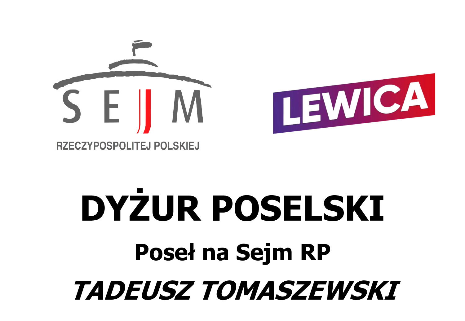 Poseł na Sejm RP zaprasza na dyżur poselski 31 stycznia 2024 r. (środa).