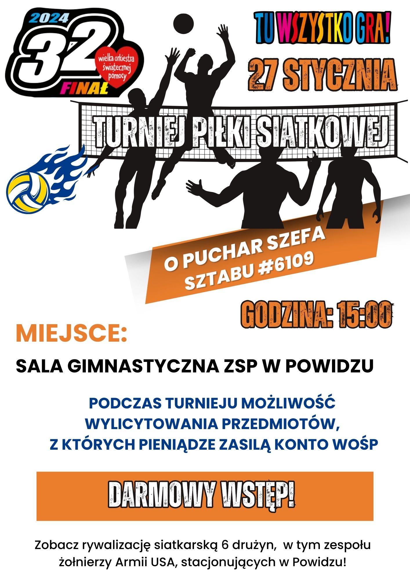 W sobotę (27.01.2024 r.) zapraszamy na Turniej Piłki Siatkowej o Puchar Szefa Powidzkiego Sztabu WOŚP, podczas którego rywalizować będzie 6 drużyn siatkarskich (w tym drużyna amerykańska).