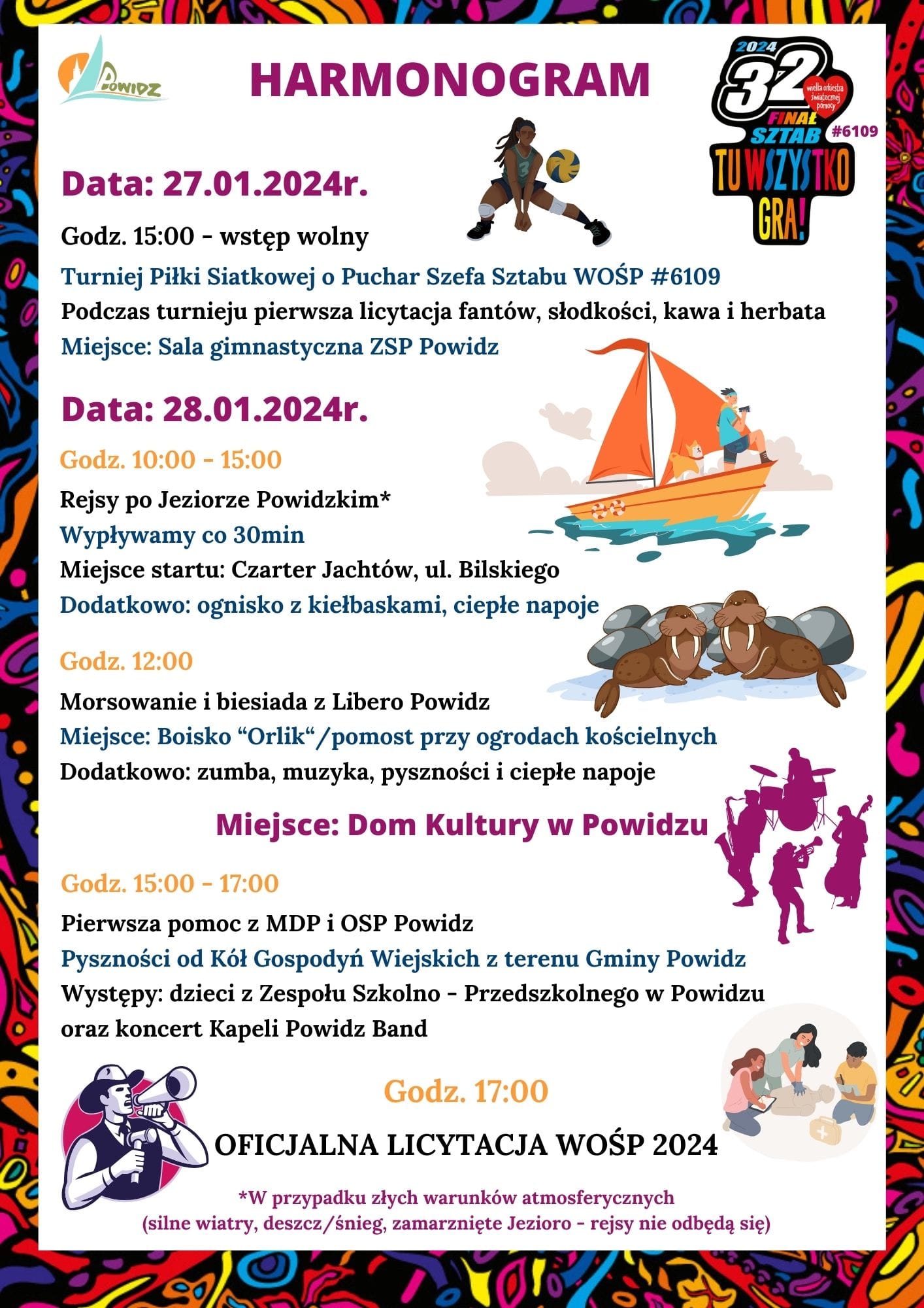 – Występy uczniów z ZSP w Powidzu, pokazy pierwszej pomocy z OSP Powidz, a także koncert Kapeli Powidz Band, godz. 15:00-17:00