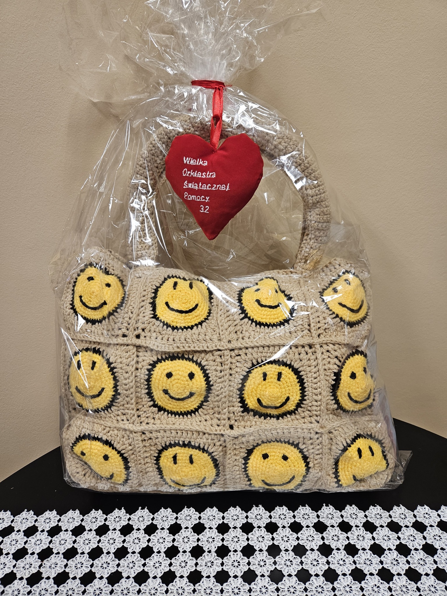 – ręcznie robiona na drutach torba i serce,