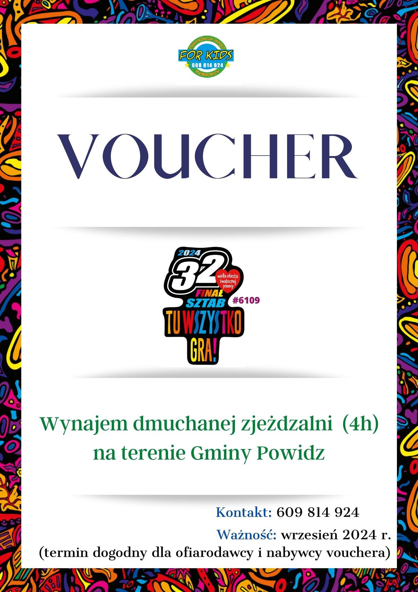– voucher na wynajem dmuchanej zjeżdżalni (4h) na terenie Gminy Powidz,