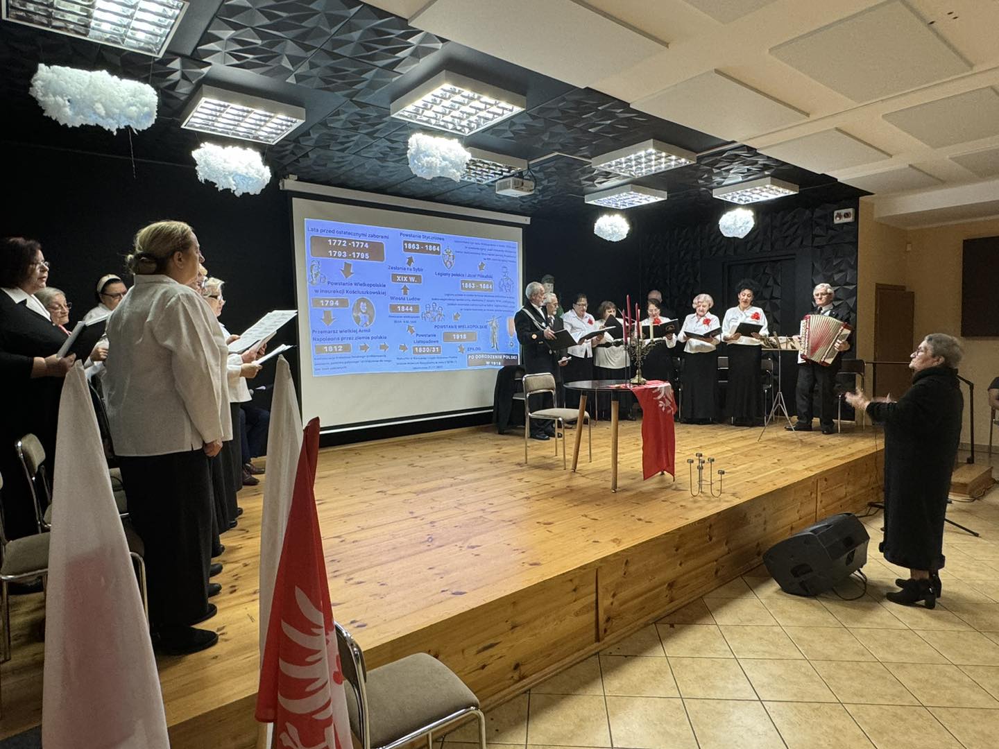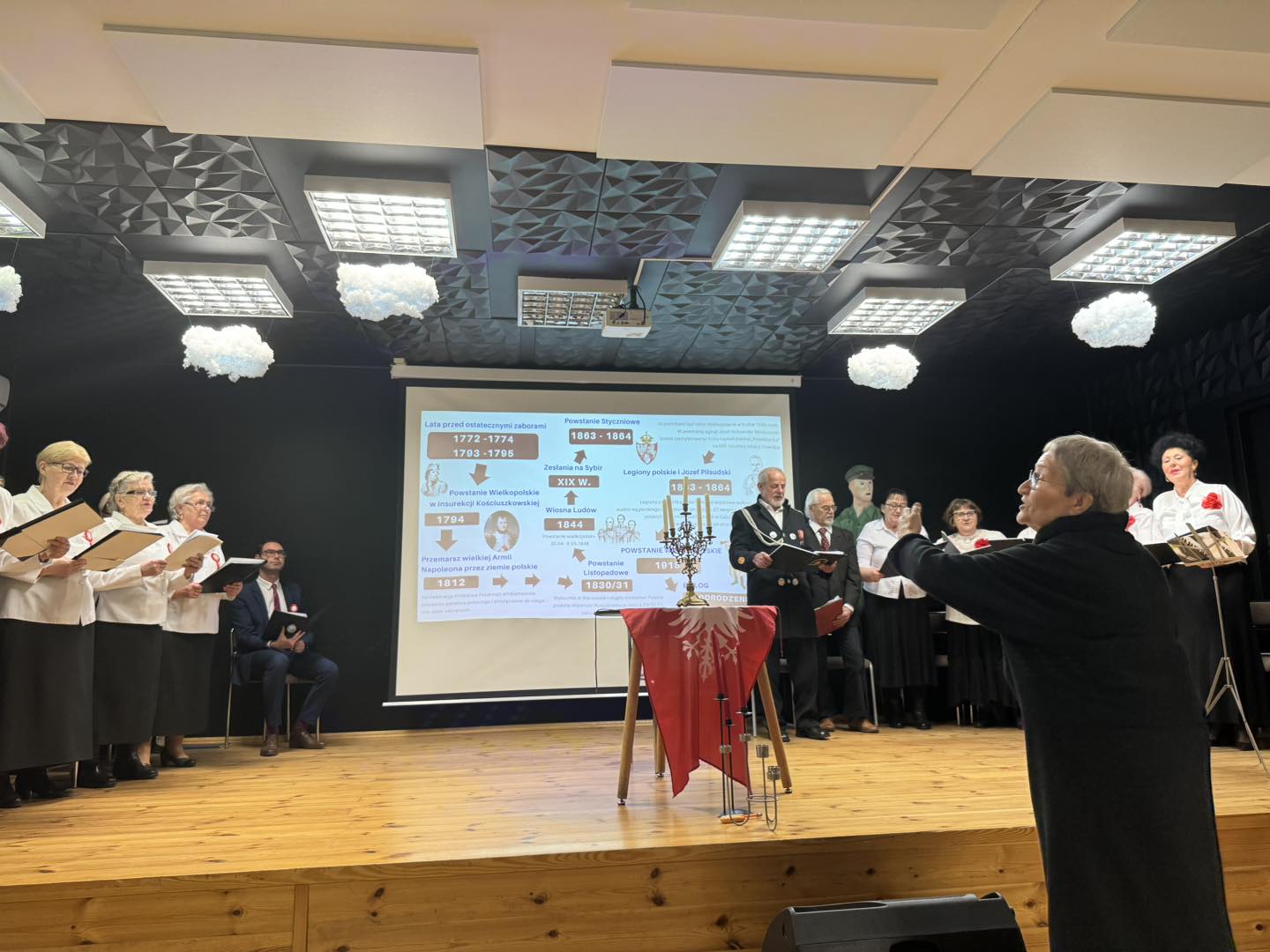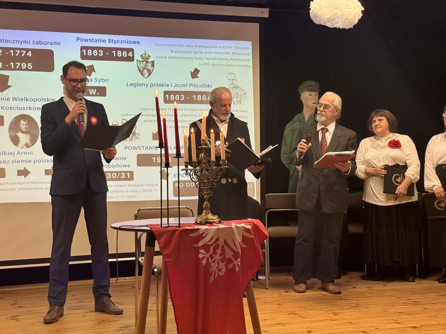 Na scenie powidzkiego Domu Kultury wystąpił Chór Sonata, Zespół Powidzanie i aktorzy Teatru Słowa wraz z Dyrektorem DK Robertem Czechorowskim. Montaż słowno-muzyczny, pod kierownictwem Pani Haliny Ganińskiej – Prezes TTP, przedstawiał wydarzenia historyczne związane z Powstaniem Wielkopolskim, w którym uczestniczyli dzielni mieszkańcy Gminy Powidz. Zaprezentowano utwory muzyczne, poetyckie oraz odśpiewano Rotę.