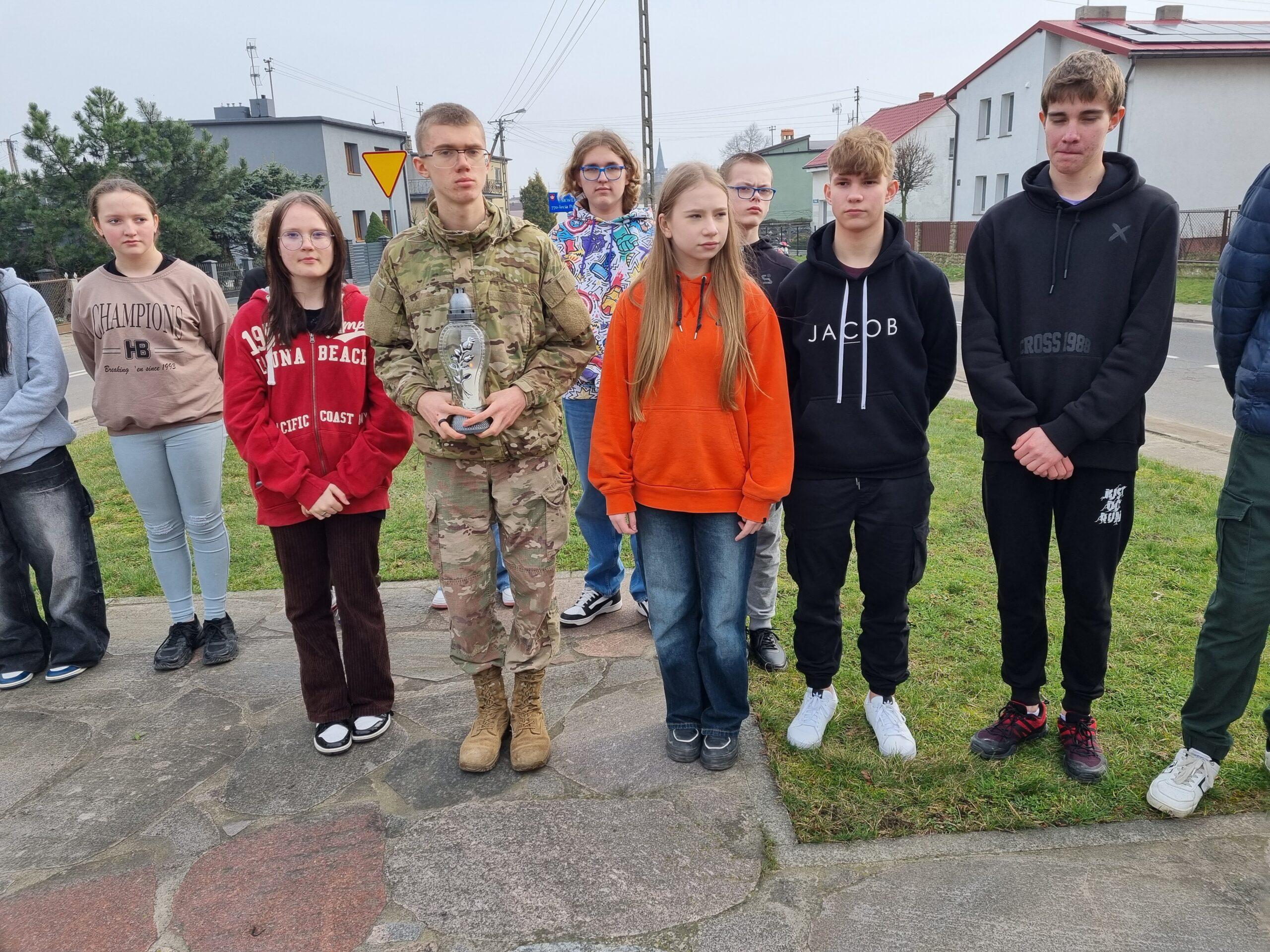 Uczniowie ZSP Powidz wraz z wicedyrektorem Sławomirem Skudzawskim przygotowali i odczytali tekst opowiadający o życiu Żołnierzy Niezłomnych z Gminy Powidz. Wśród bohaterów Ziemi Powidzkiej byli: