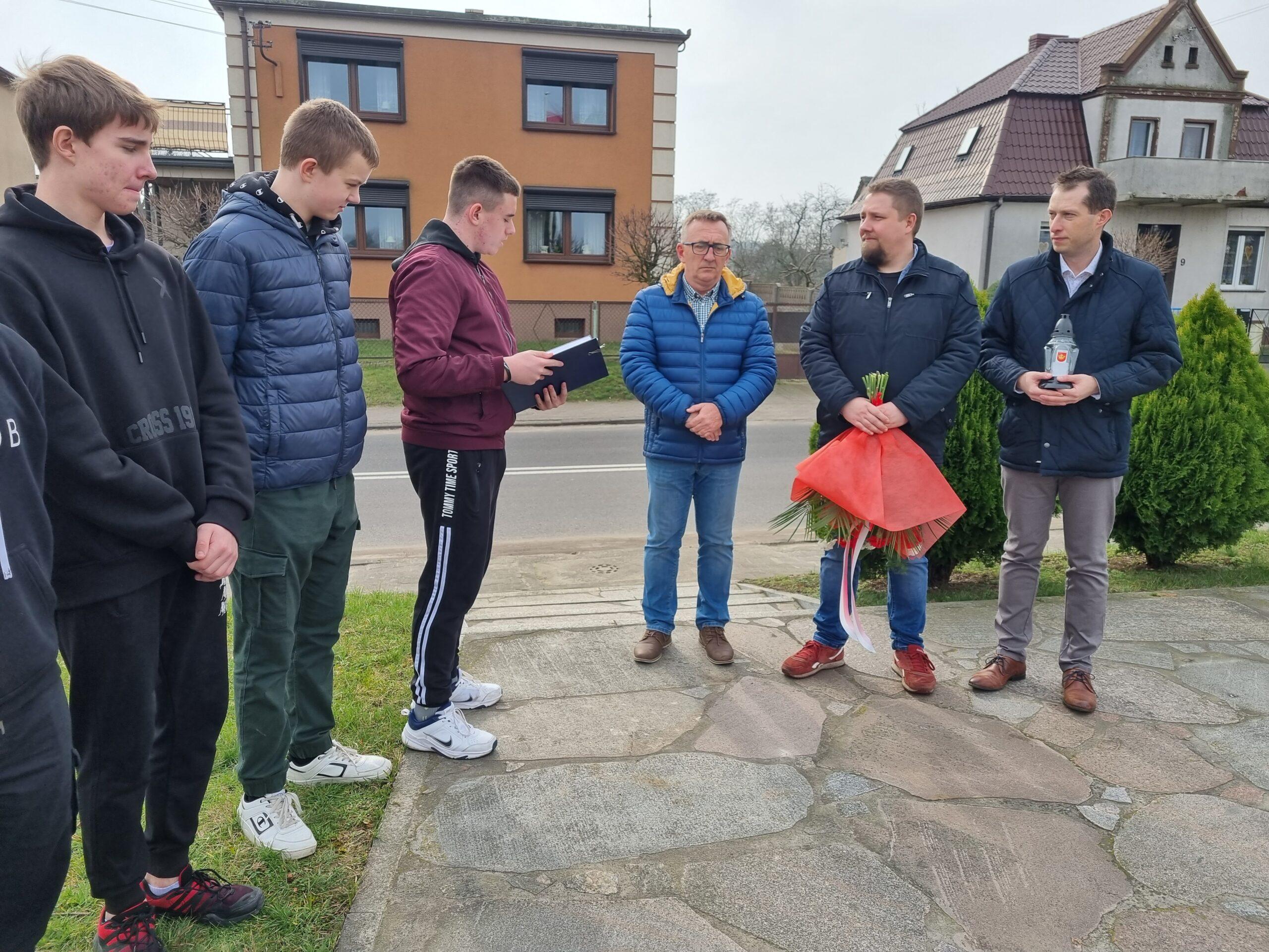 Wójt podziękował za pamięć o Żołnierzach Wyklętych wspominając, że byli nazywani także Niezłomnymi, ponieważ najpierw walczyli o wolność podczas II wojny, a następnie w czasie komunistycznego reżimu. Wiele osób zostało wtedy „złamanych” i zmuszonych do poddania się, ale oni nie dali się zastraszyć czy zmanipulować, nigdy nie współpracowali też z reżimem komunistycznym. Wójt zaznaczył, że musimy podtrzymywać pamięć szczególnie o żołnierzach z Ziemi Powidzkiej, bo dali „piękny przykład bohaterstwa, waleczności, postępowania w zgodzie ze swoim sumieniem oraz wierności swoim zasadom i wartościom, które są ponadczasowe”.