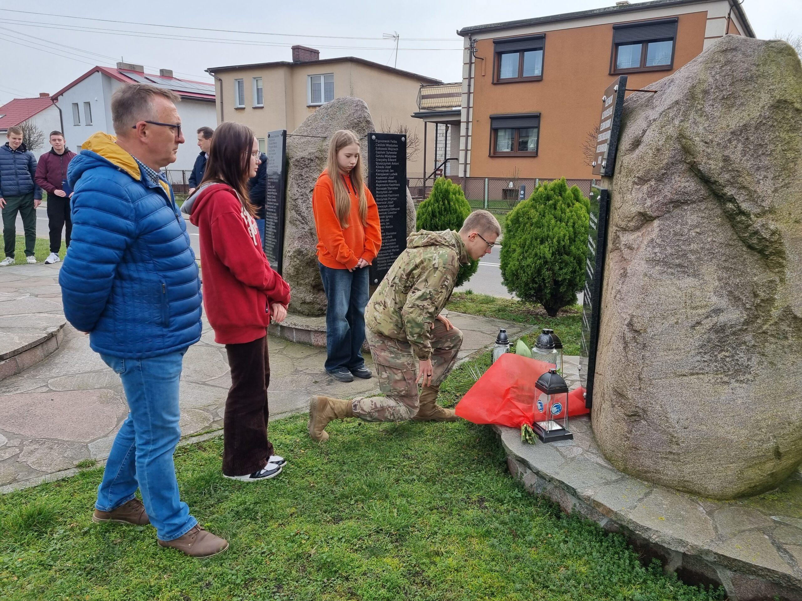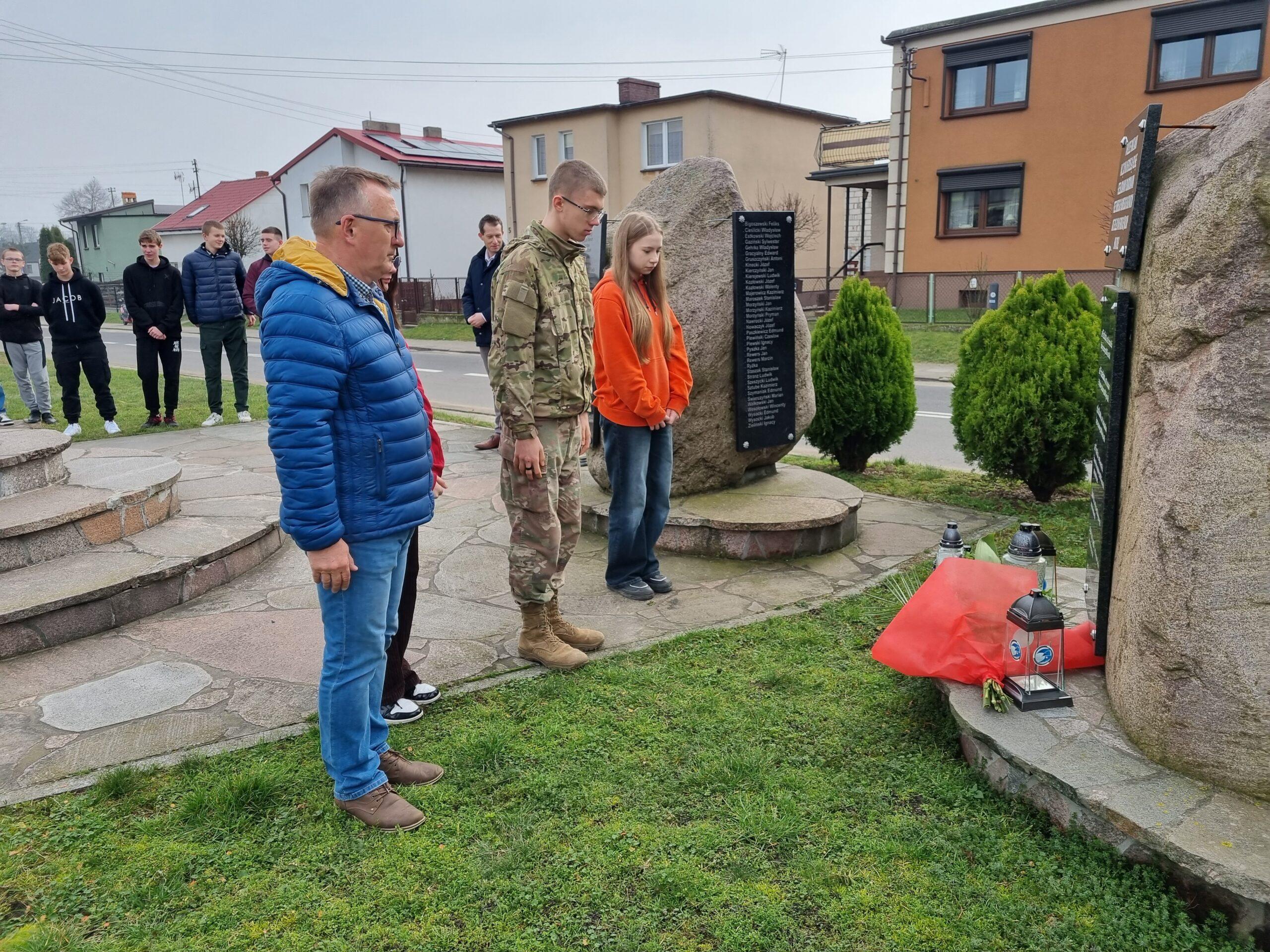 Wójt Gminy Powidz Jakub Gwit, Przewodniczący Rady Gminy Powidz Filip Muszyński oraz delegacja Zespołu Szkolno – Przedszkolnego im. Kompanii Powidzkiej 1918 r. złożyli kwiaty i znicze przy gminnym miejscu pamięci – Skwerze 770-lecia.