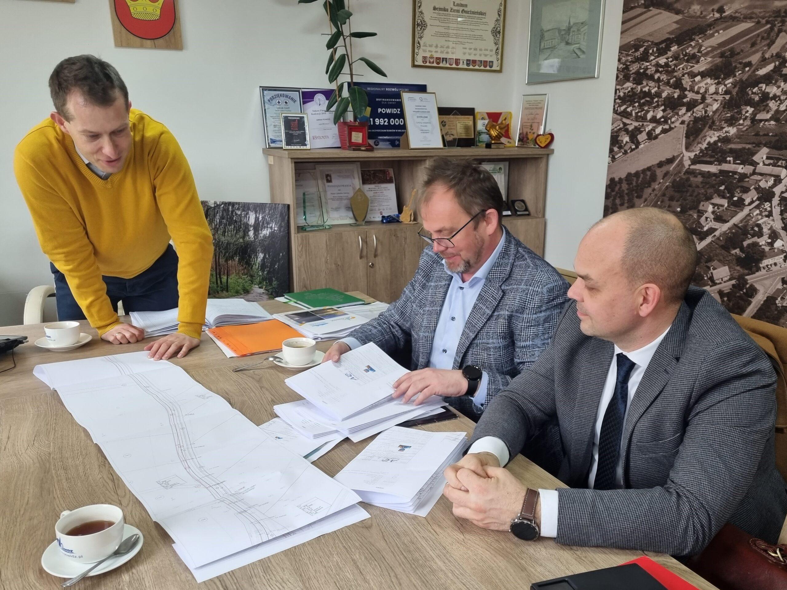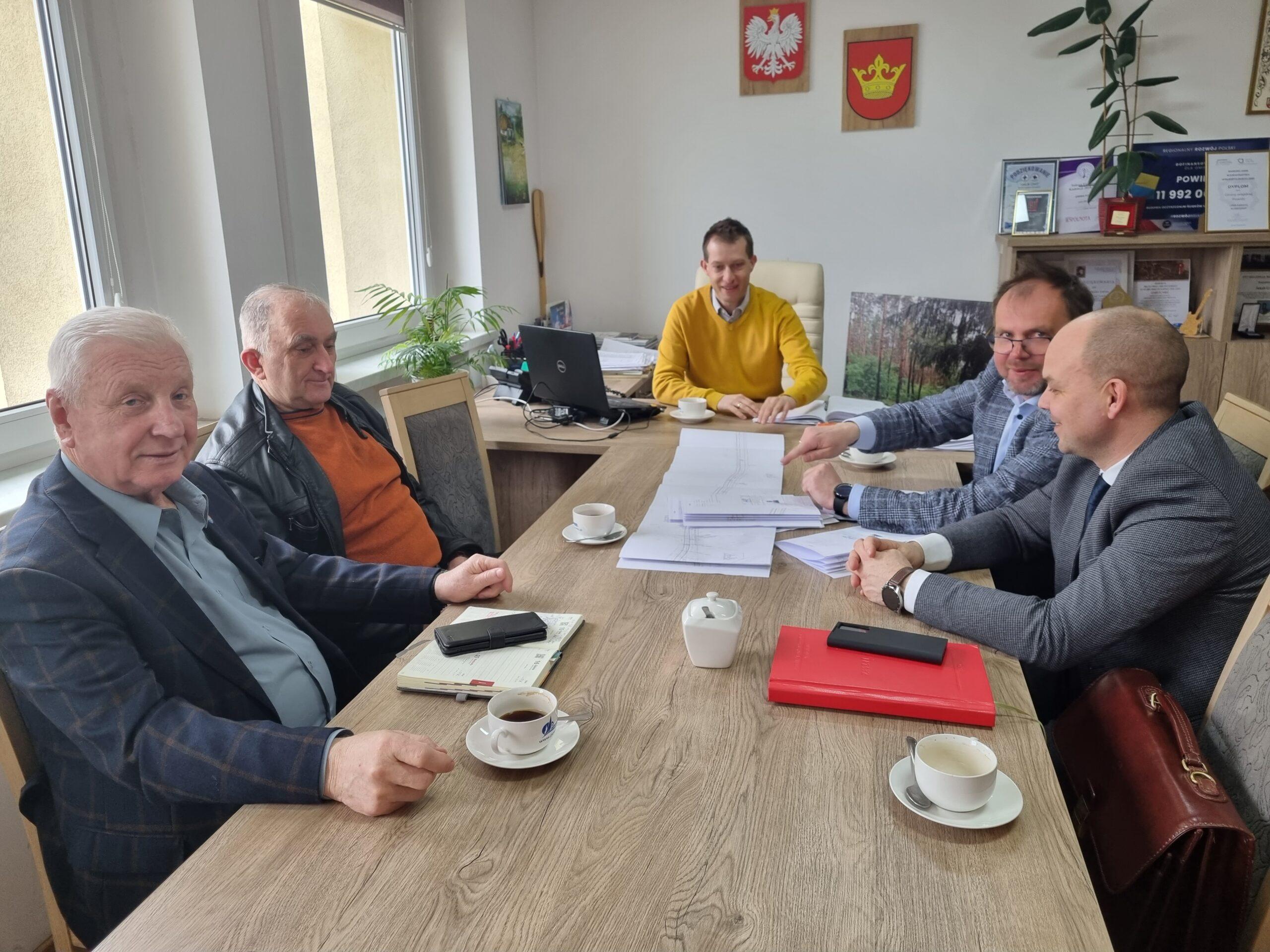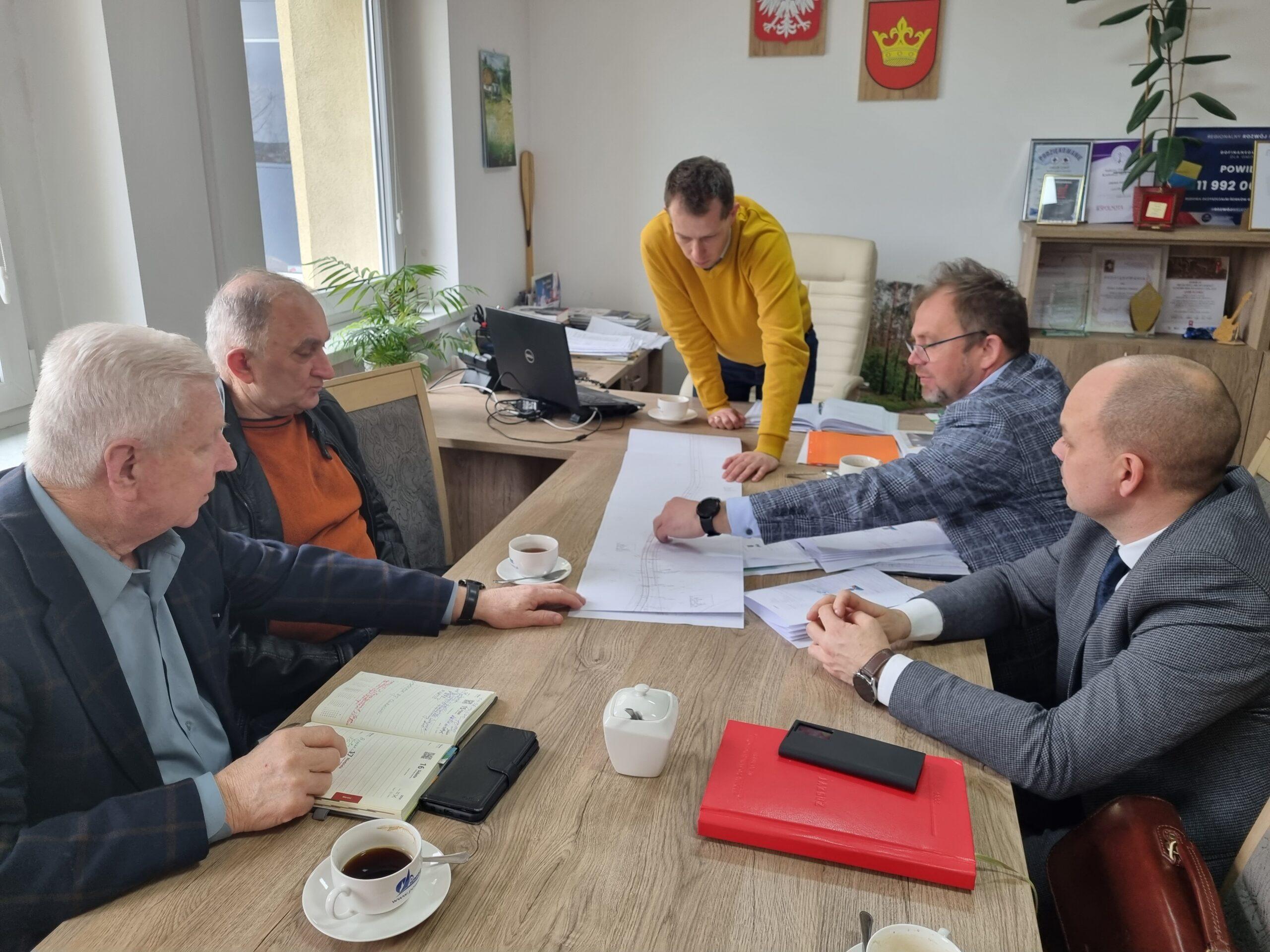 18 marca br. w Urzędzie Gminy Powidz odbyło się spotkanie robocze z udziałem: Wicestarosty Słupeckiego Czesława Dykszaka, Dyrektora PZD Michała Klotschke, projektanta Adama Chmielewskiego oraz radnego Rady Gminy Powidz z Wylatkowa Włodzimierza Wełnica.