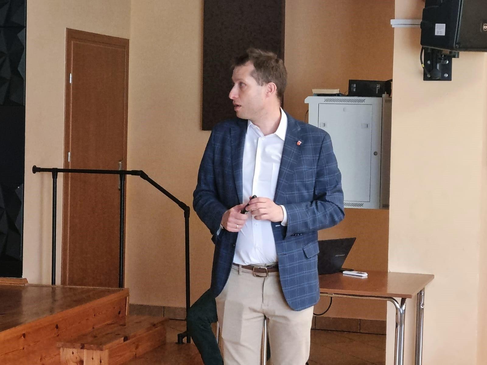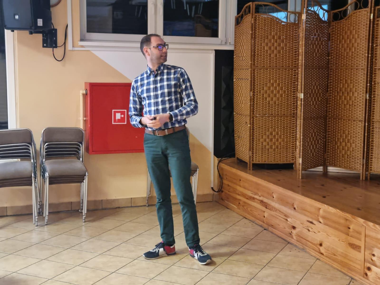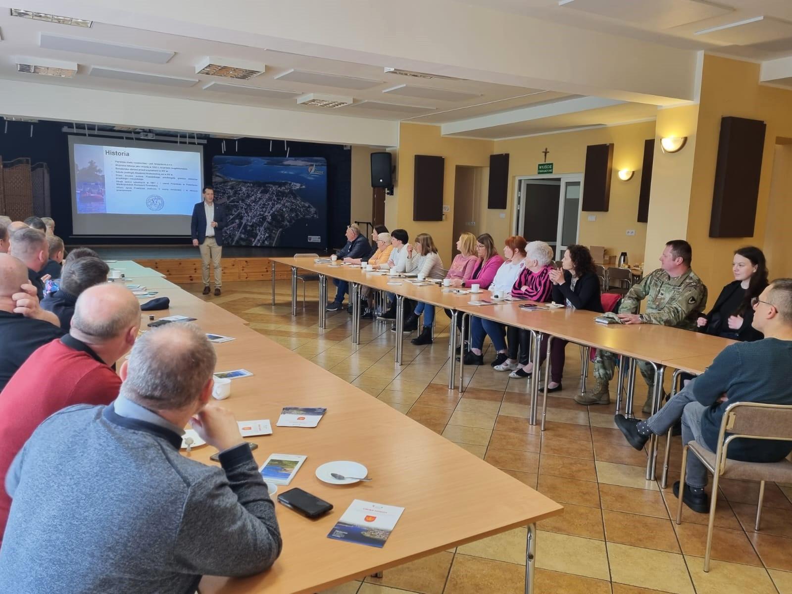 Podczas spotkania w Domu Kultury, Wójt Gminy Powidz Jakub Gwit przedstawił charakterystykę gminy, zwracając szczególną uwagę na jej historię, najważniejsze inwestycje oraz filary rozwoju – przyrodę, turystykę i bazę wojskową.
