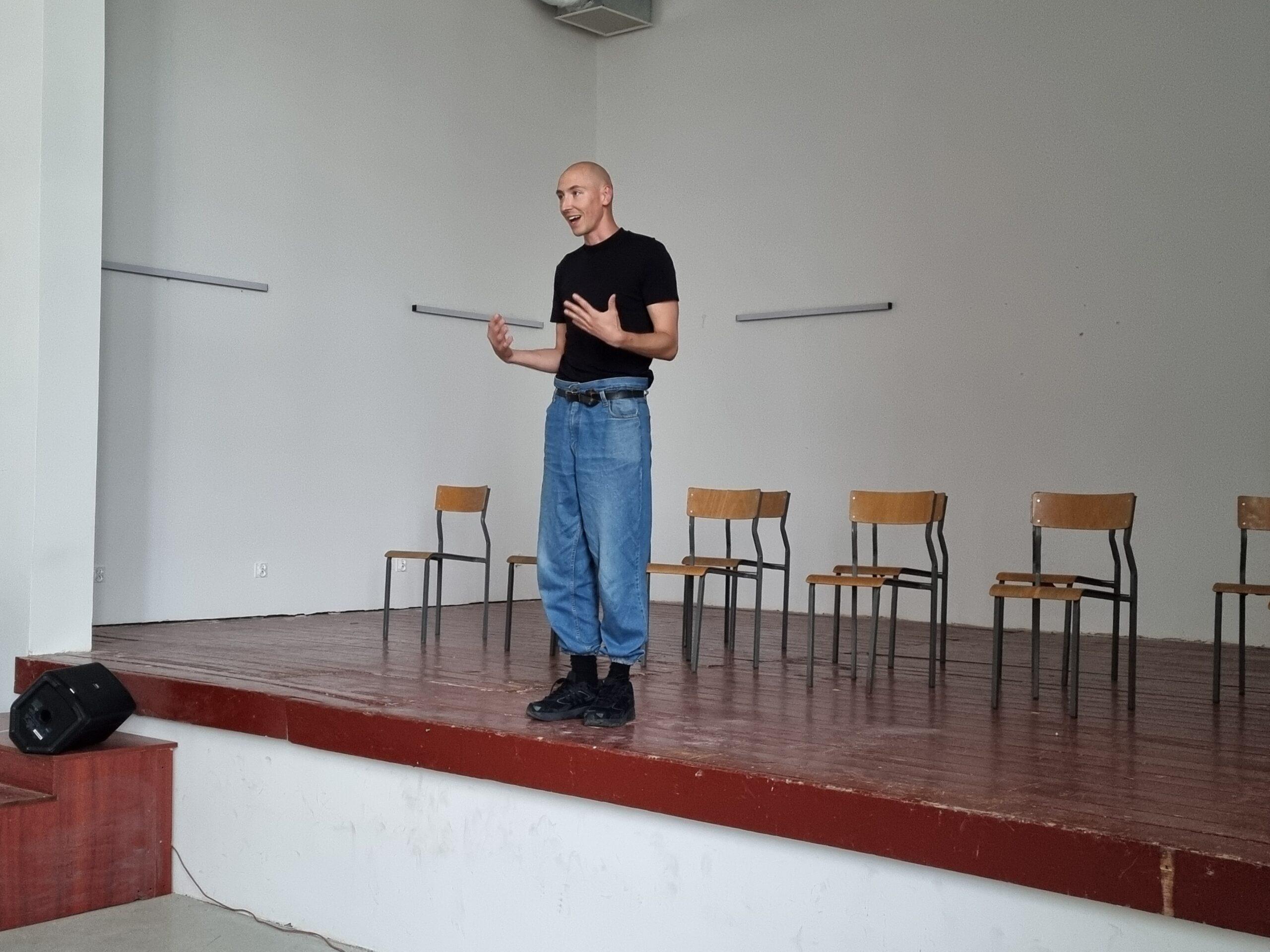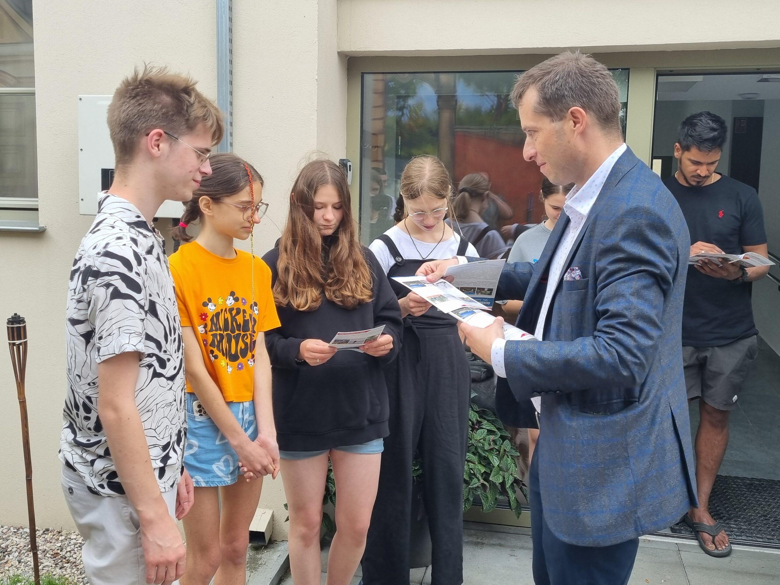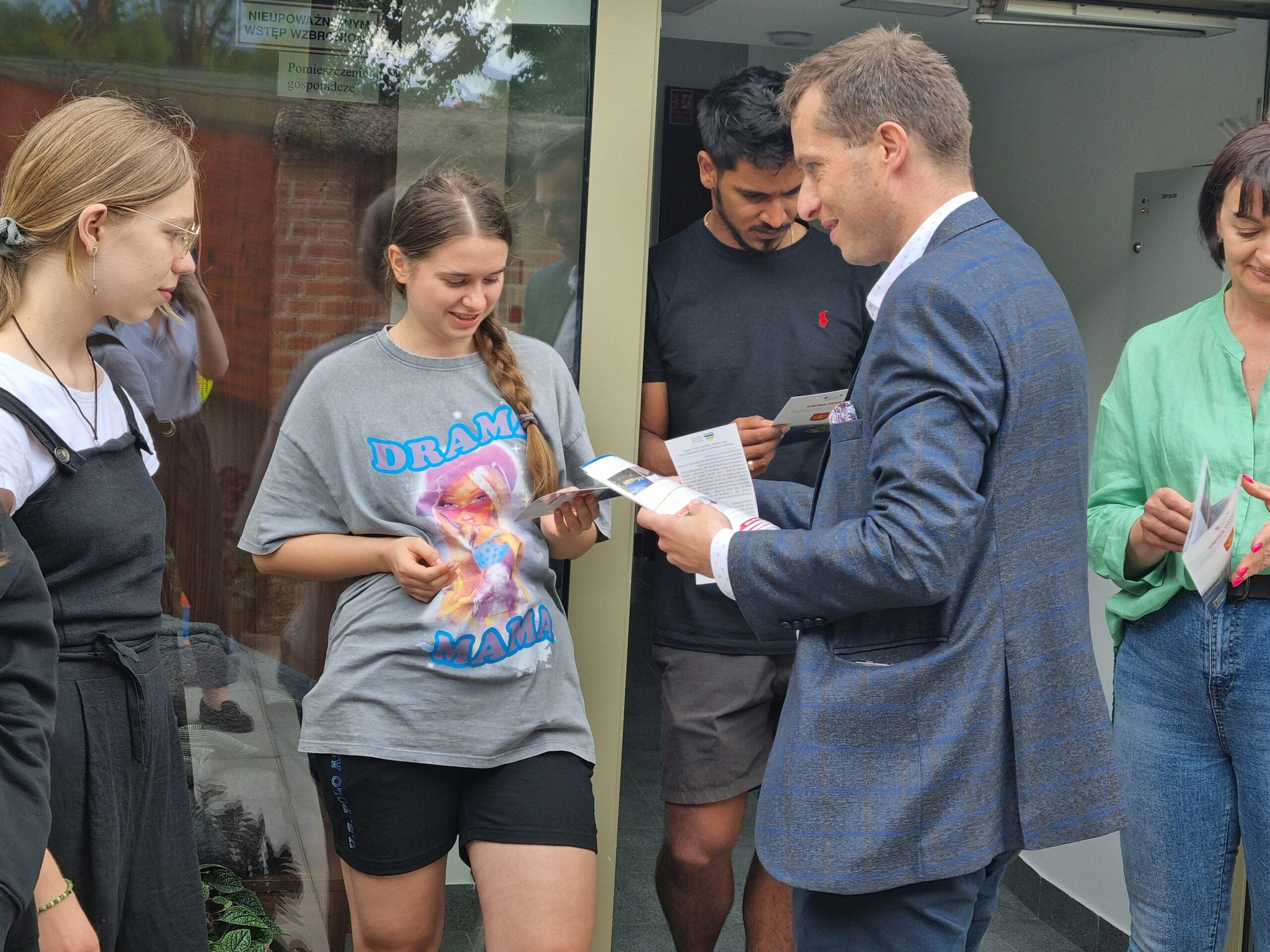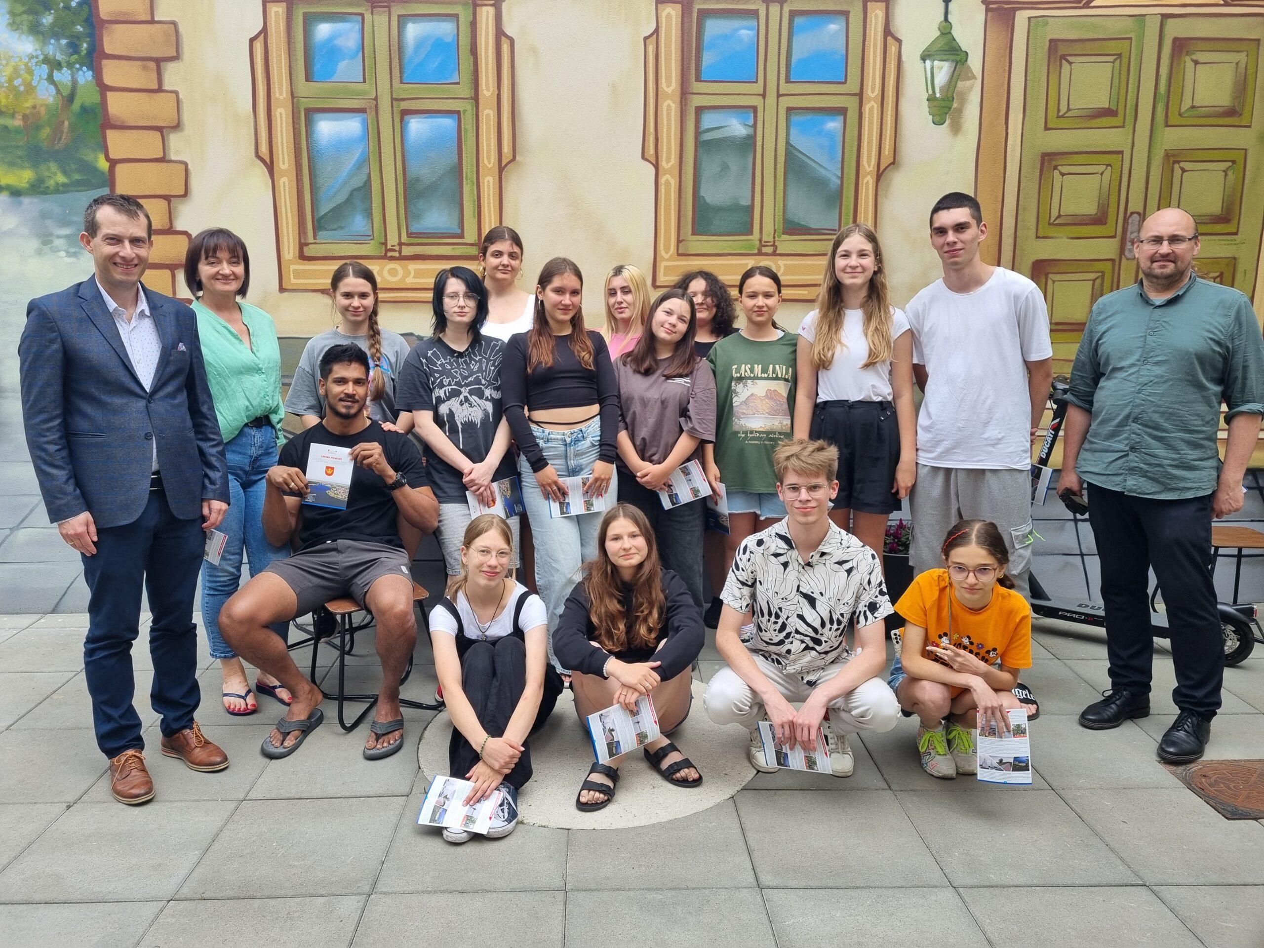 Dzień wcześniej Wójt Gminy Powidz Jakub Gwit spotkał się z młodzieżą, która od kilku dni przygotowywała się w Powidzu do spektaklu. Wójt opowiedział grupie ciekawostki na temat Powidza oraz rozmawiał z młodzieżą na temat ich wrażeń z pobytu i pracy w tym urokliwym miejscu. Wrażenia naszych gości były bardzo pozytywne. Przy okazji spotkania, grupa zaprezentowała fragment występu, w którym każdy przedstawił się i opowiedział o swoim pochodzeniu oraz zainteresowaniach.