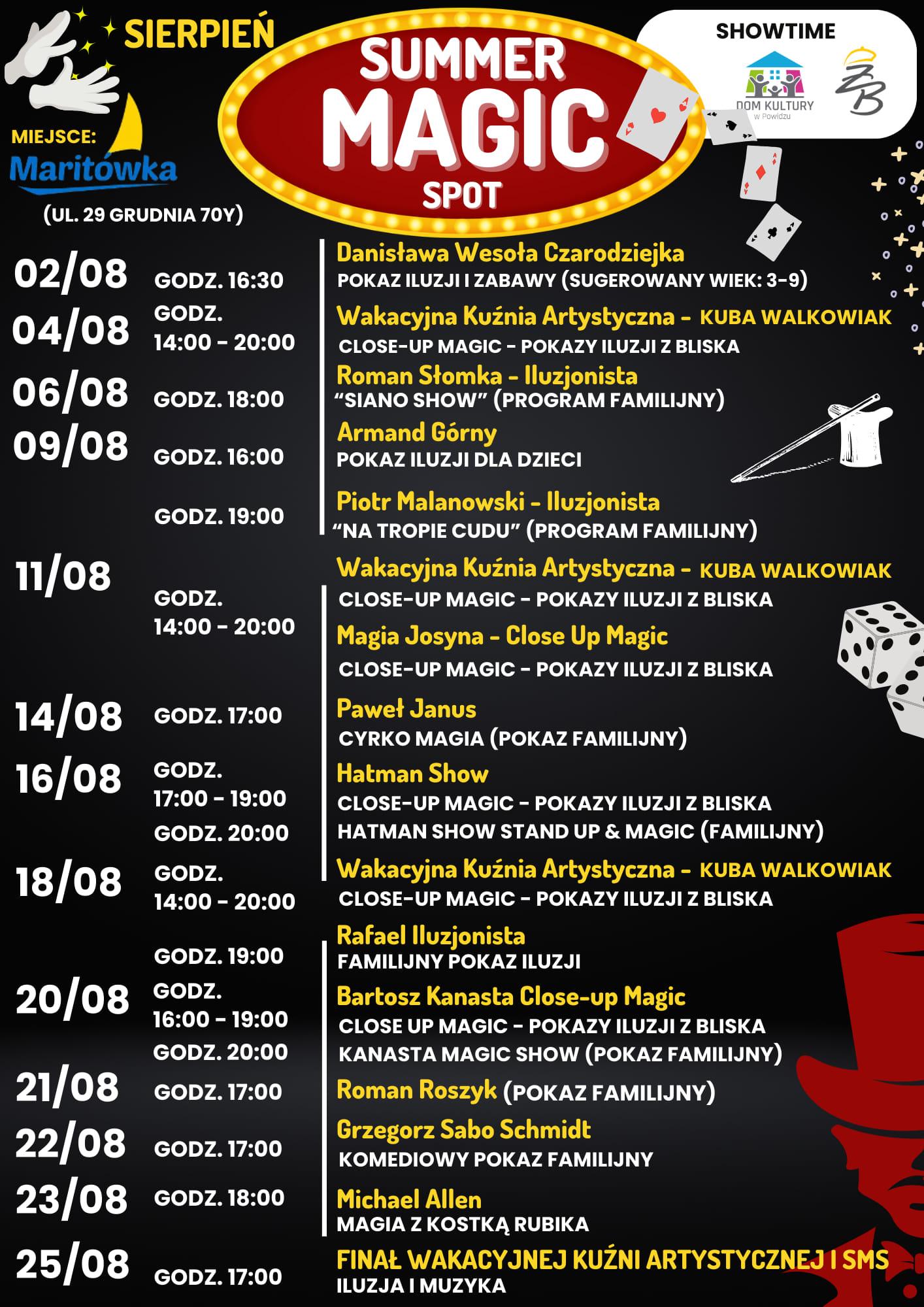 Będą nie tylko ogólne pokazy magii, ale również CLOSE-UP MAGIC, czyli bezpośrednie spotkania z iluzjonistami przy stoliku, którzy z bliska zaprezentują swoje magiczne sztuczki!