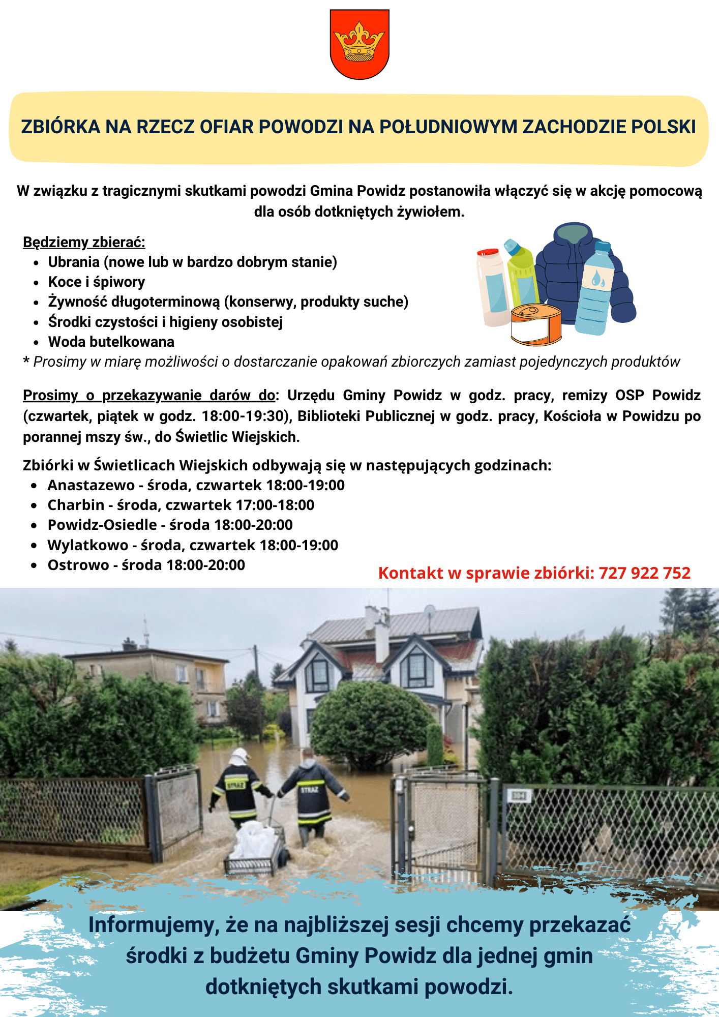 Ogłaszamy akcję pomocową dla osób dotkniętych powodzią