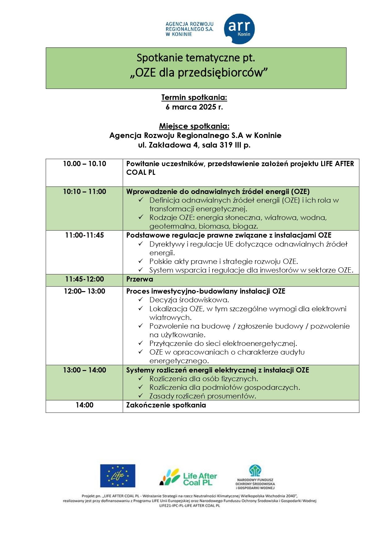 Agencja Rozwoju Regionalnego S.A. w Koninie zaprasza na spotkanie tematyczne pt.: „OZE dla Przedsiębiorców”, które odbędzie się 6 marca 2025 r. w siedzibie ARR przy ul. Zakładowej 4 w Koninie.