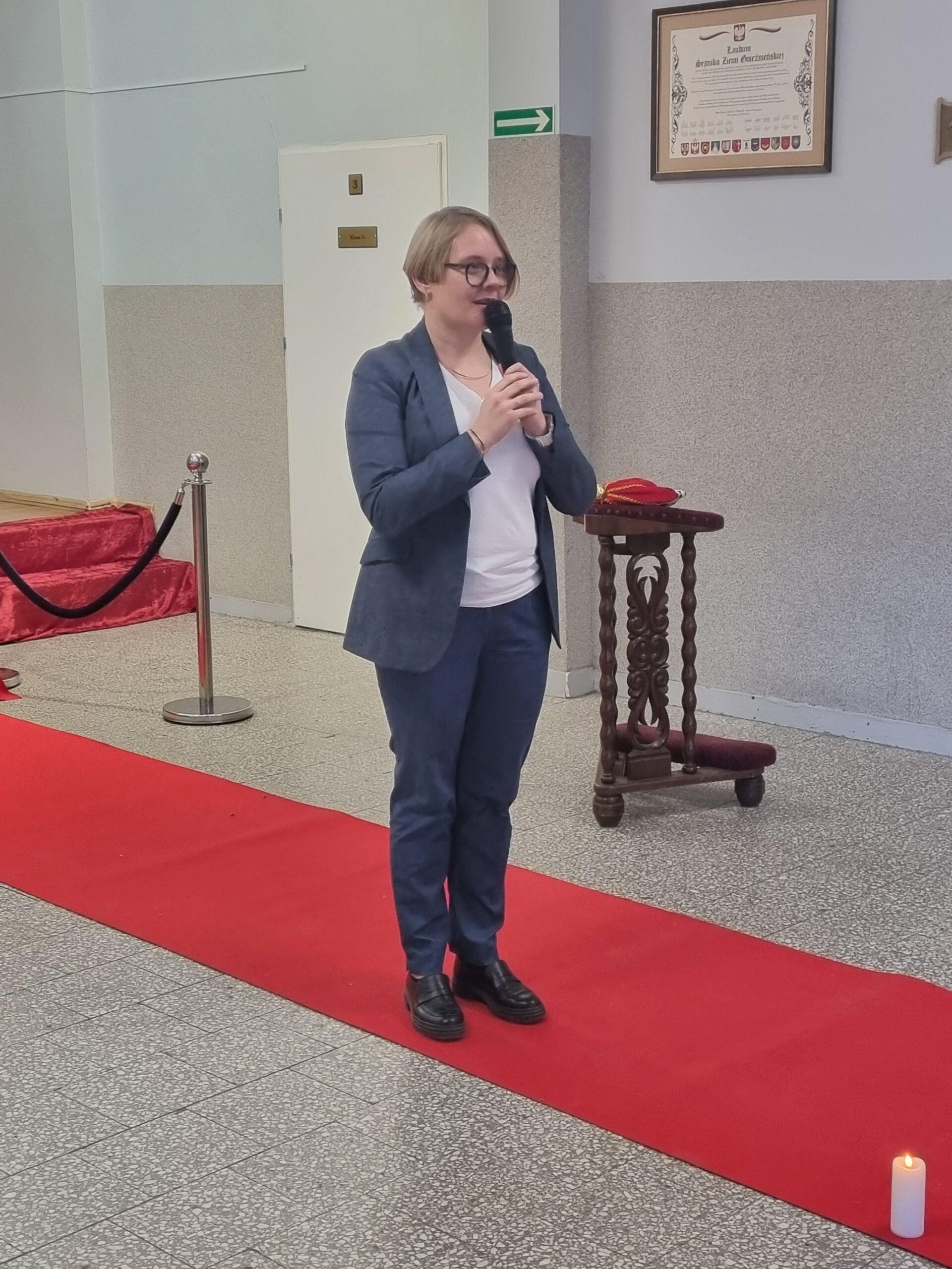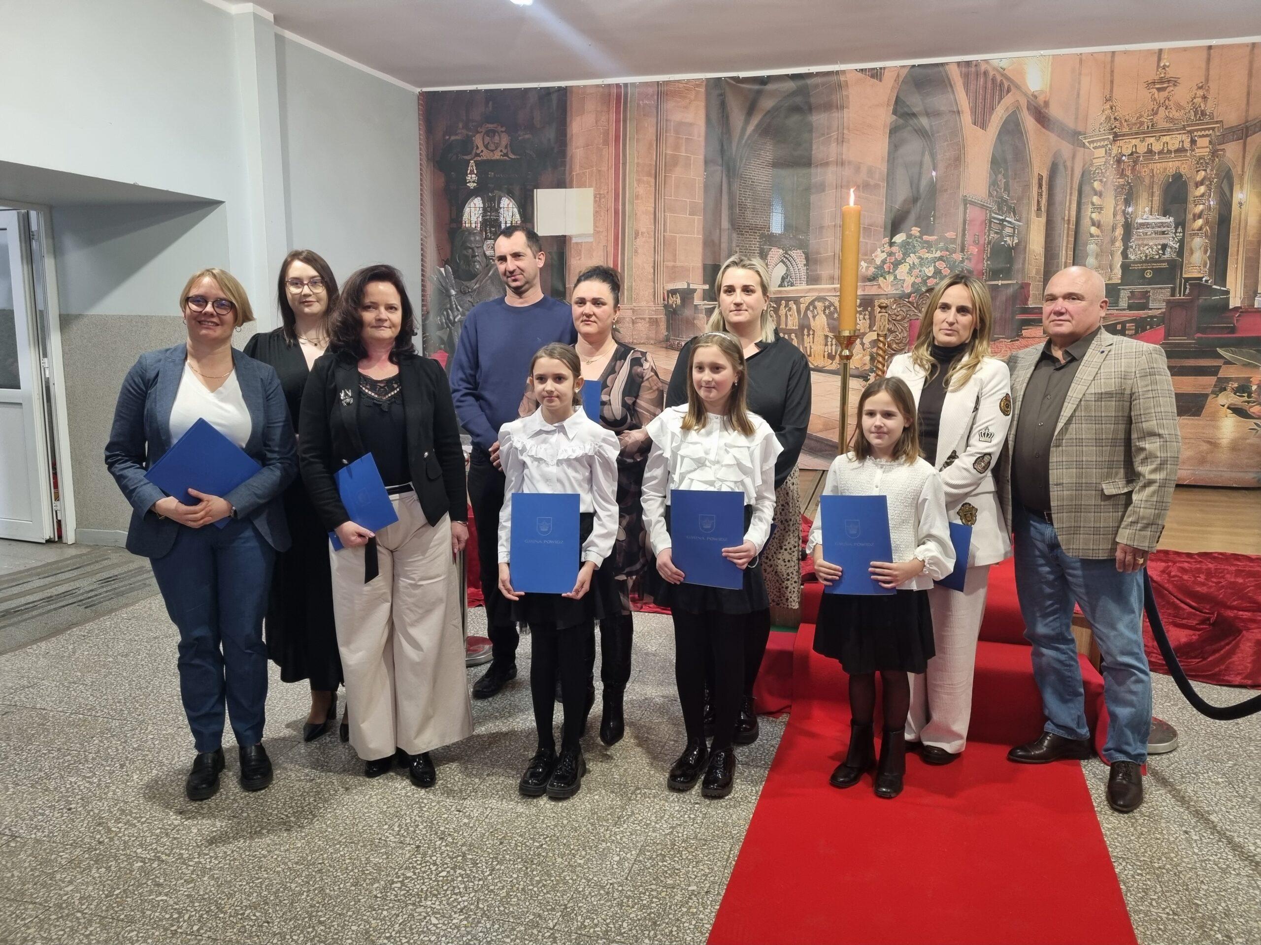 Następnie Sekretarz Gminy wraz z Przewodniczącą Rady i Panią Dyrektor wręczyły stypendia trzem uczniom z klas IV-VIII, którzy otrzymali najwyższą średnią ocen. Życząc kolejnych sukcesów i radości z osiągnięć, Pani Sekretarz zachęcała uczniów do dalszej owocnej pracy. Podziękowała też rodzicom stypendystów za wsparcie w procesie edukacji i zaangażowanie w życie szkoły.