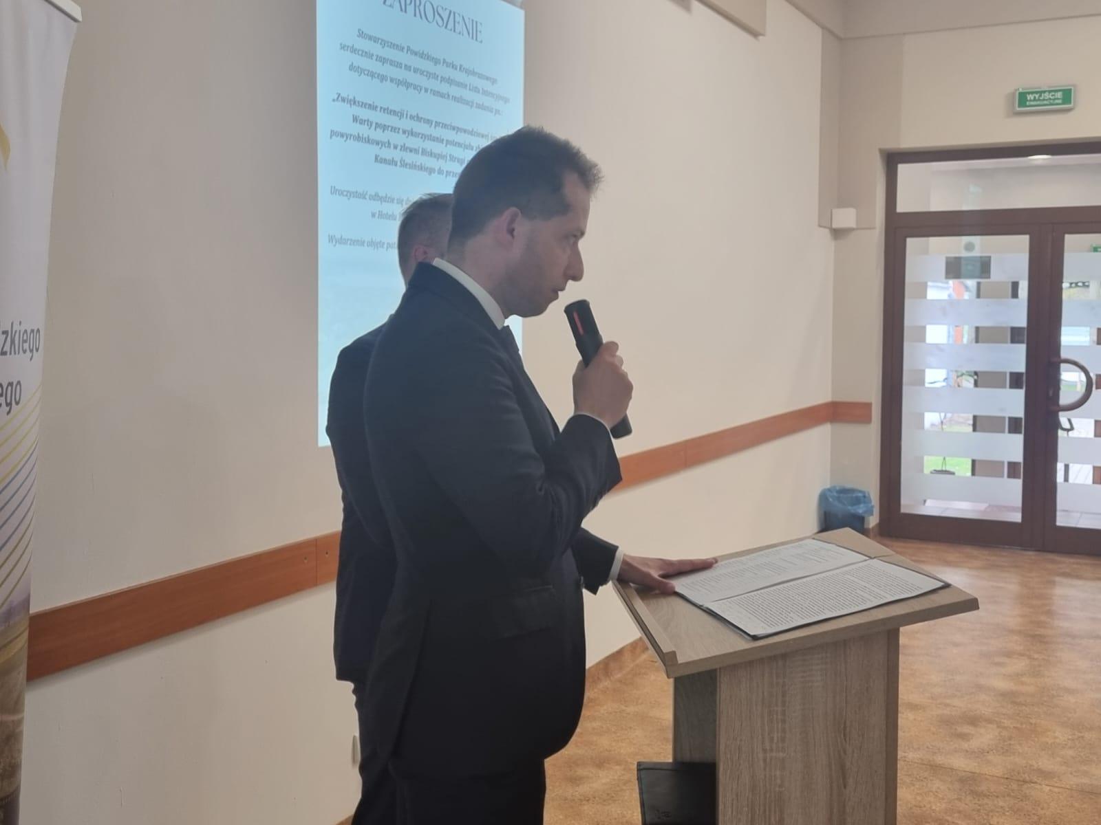 Uczestników powitali członkowie Zarządu Stowarzyszenia Powidzkiego Parku Krajobrazowego – Burmistrz Gminy i Miasta Witkowo Krzysztof Szoszorek i Wójt Gminy Powidz Jakub Gwit. W imieniu pani Minister Klimatu i Środowiska głos zabrał Piotr Szczepański, Dyrektor Gabinetu Politycznego. Założenia dla realizacji projektu oraz jego uzasadnienie naukowe zaprezentowali: prof. dr hab. Jan Przybyłek i Paweł Szadek z ZE PAK S.A. oraz dr Michał Kupczyk z UAM. Potrzebę pilnych działań ratunkowych dla akwenów zgłaszali: reprezentujący lokalny biznes Mirosław Klimas oraz Prezes Stowarzyszenia ,,Eko-Przyjezierze” Józef Drzazgowski. Znaczenie realizacji projektu dla samorządu województwa przedstawił członek zarządu Jacek Bogusławski.
