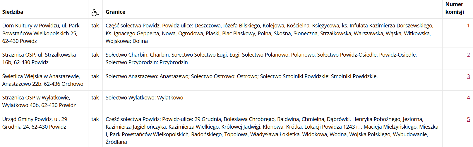 Na terenie Gminy Powidz działało 5 obwodowych komisji wyborczych, były to komisje w: Domu Kultury w Powidzu, Strażnicy OSP w Powidzu, Świetlicy Wiejskiej w Anastazewie, Strażnicy OSP w Wylatkowie, Urzędzie Gminy Powidz.