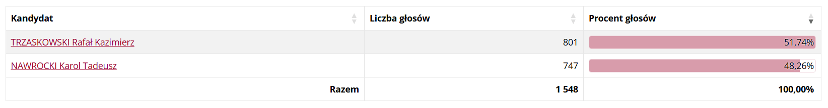 Procentowo głosy na kandydatów rozłożyły się następująco: