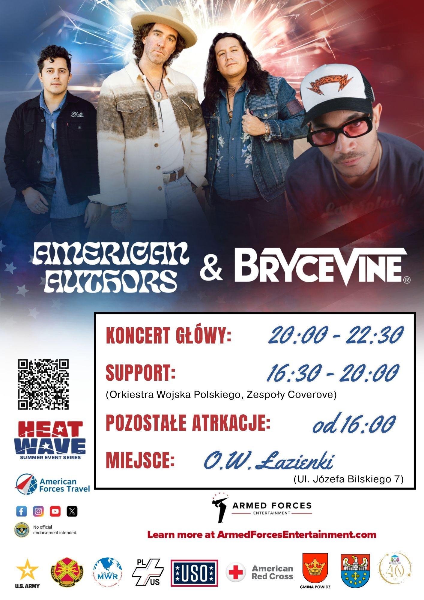 Na powidzkiej scenie oprócz Orkiestry Reprezentacyjnej Wojska Polskiego i polskich zespołów coverowych, wystąpią amerykańscy artyści: Bryce Vine oraz American Authors!