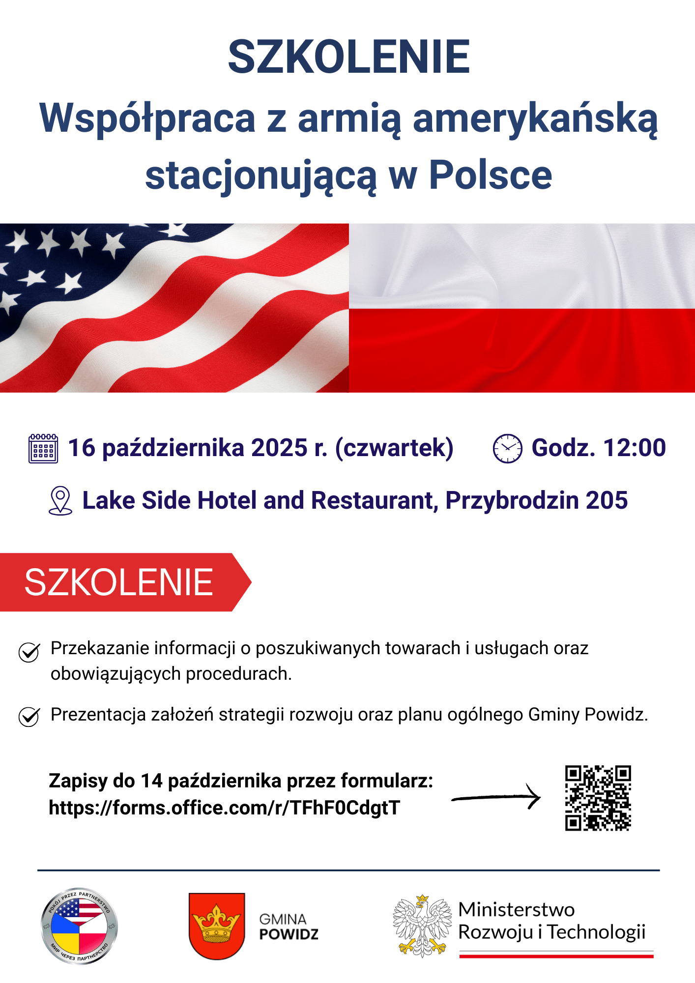 W ramach spotkania odbędą się szkolenia nt. współpracy z armią amerykańską stacjonującą w Polsce oraz przekazane zostaną informacje o poszukiwanych towarach i usługach, a także obowiązujących procedurach.