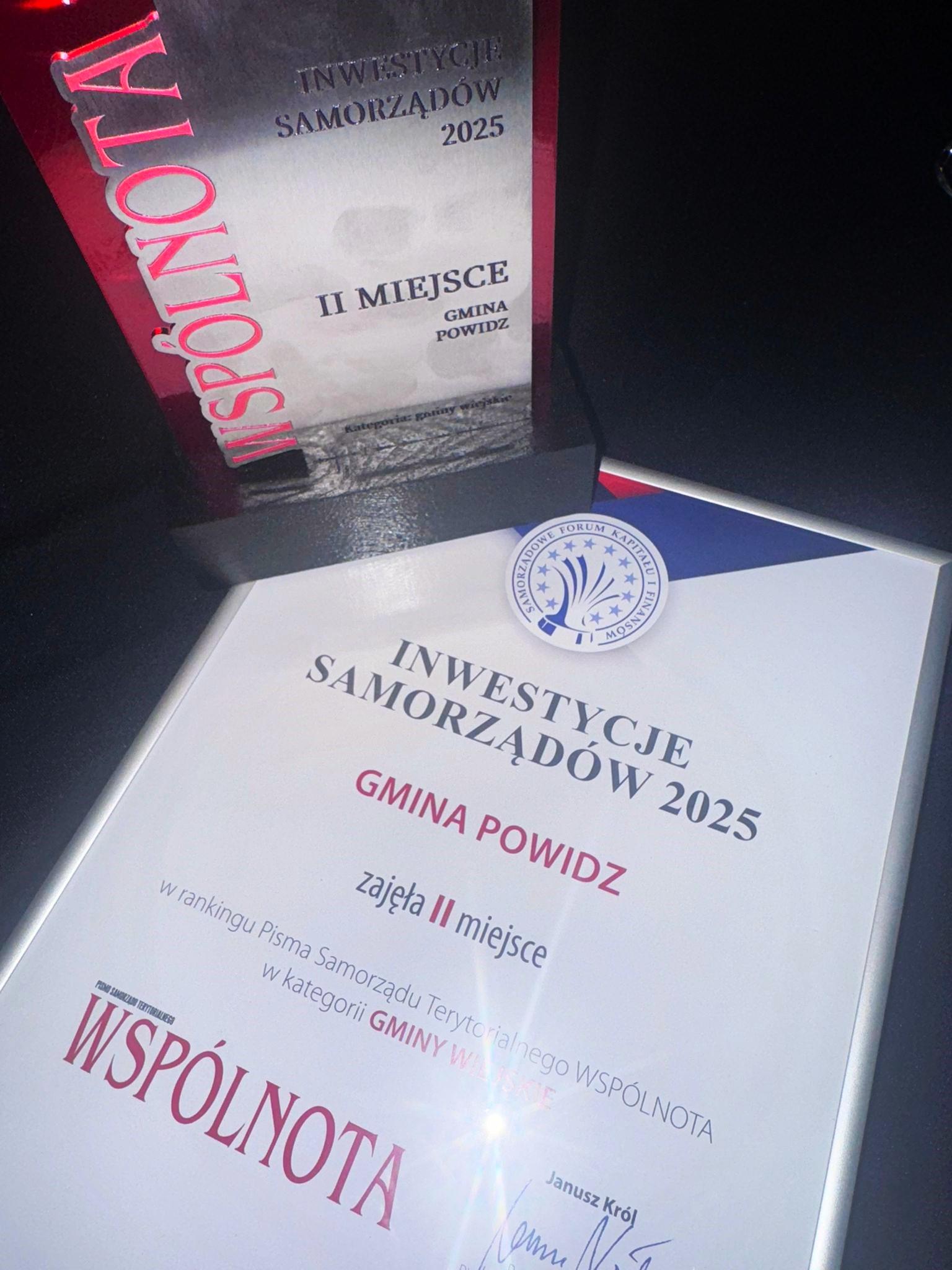 Nagrodę dla Gminy Powidz odebrał Wójt gminy Jakub Gwit, uczestnik Forum. W kategorii gmin wiejskich Gmina Powidz uplasowała się na podium, zajmując bardzo wysokie II miejsce.