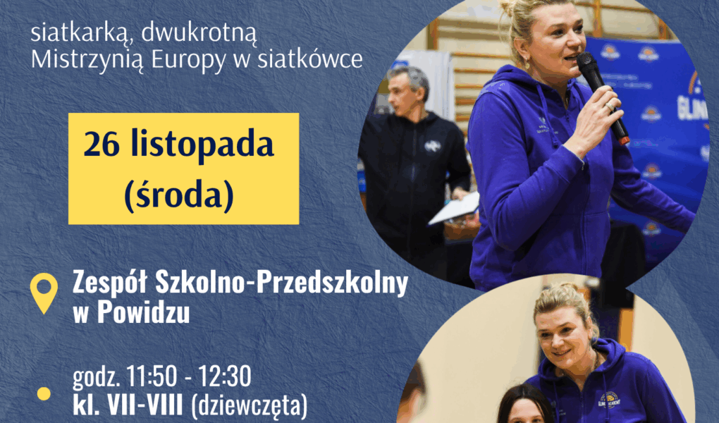 26 listopada br. dwukrotna Mistrzyni Europy w siatkówce, Mistrzyni Polski, Tryumfatorka Ligi Mistrzów – Małgorzata Glinka, odwiedziła Powidz.W pierwszej części spotkania odbyły się treningi z uczniami Szkoły Podstawowej w Powidzu, grupami dziewcząt i chłopców z klas VII-VIII.