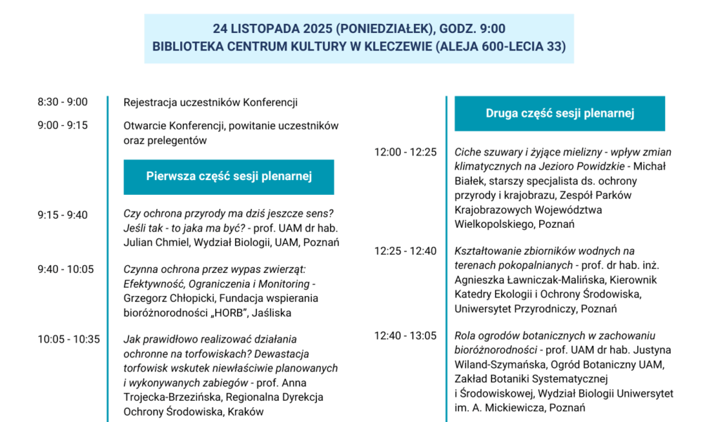 W poniedziałek 24 listopada br., w Bibliotece Centrum Kultury w Kleczewie, odbędzie się XVI Konferencja z cyklu „Współistnienie terenu przemysłowego i chronionego” organizowana przez Stowarzyszenie Powidzkiego Parku Krajobrazowego. Temat przewodni tegorocznej edycji brzmi „Czynna ochrona przyrody